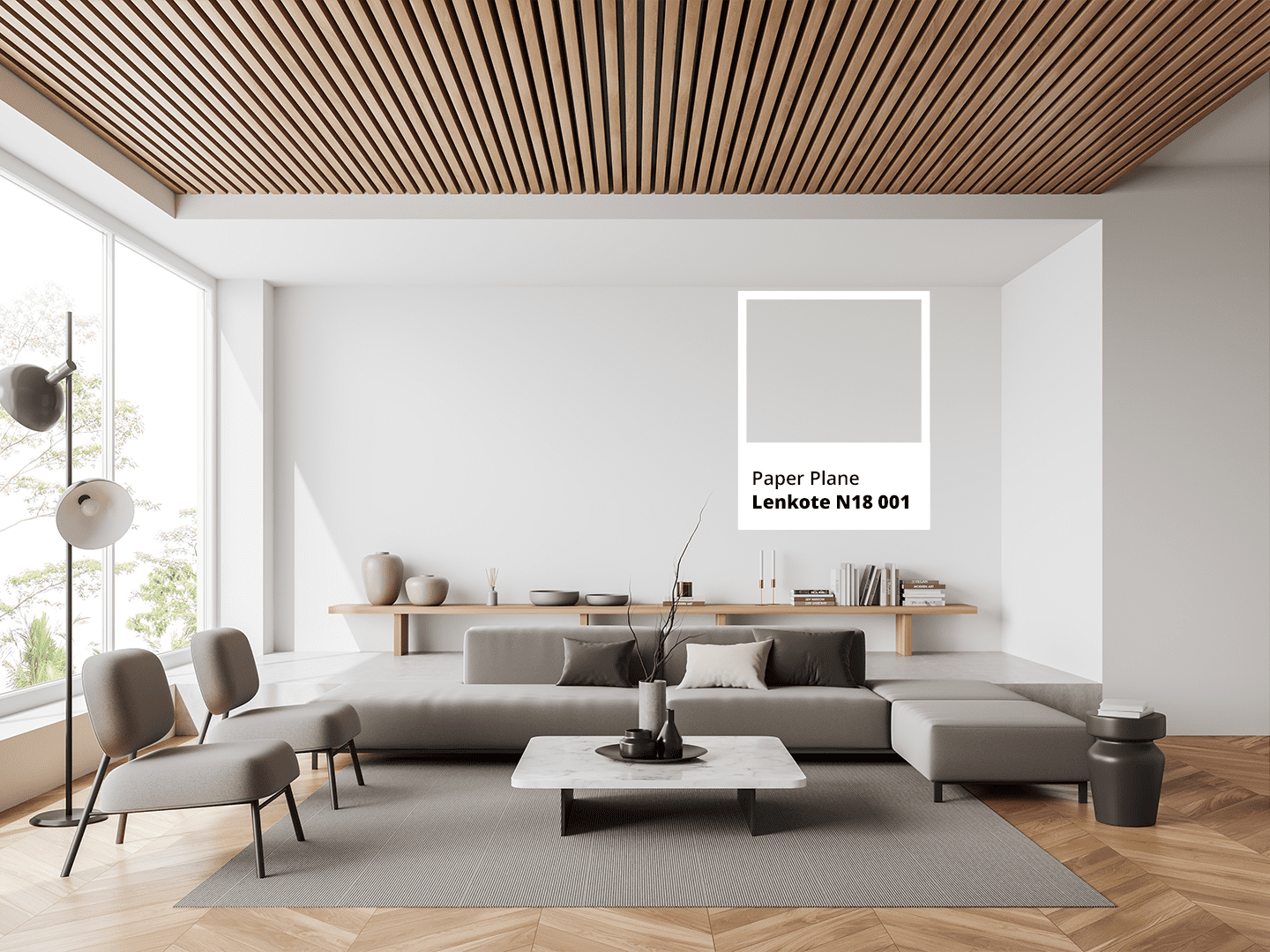Penekanan aksen kayu pada sudut ruangan dapat memberikan kesan alami pada ruangan, selain itu kamu juga bisa menggunakan aksen kayu sebagai pembatas ruangan atau hiasan pada ruangan sekitar. Sangat sering aksen kayu dipadukan dengan sentuhan marmer sehingga kesan mewah lebih tergambarkan. Kesan mewah juga bisa ditampilkan dengan pemilihan warna emas atau silver pada aksesoris ruangan.