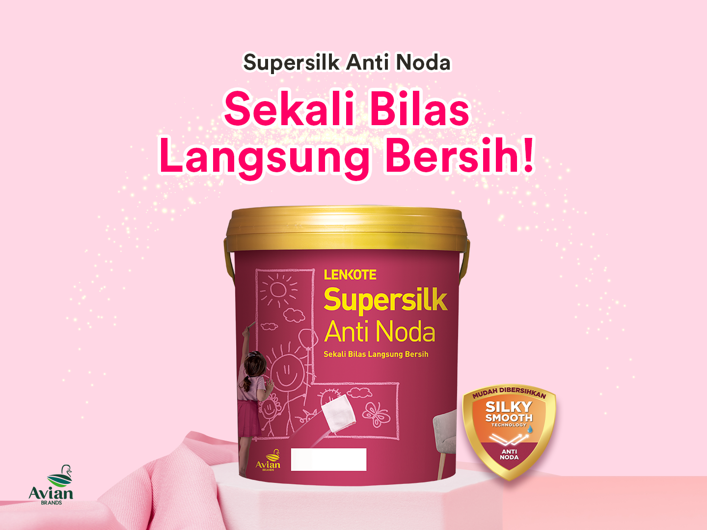 Untuk mendapatkan Cat Dinding Interior Premium Supersilk Anti Noda yang dapat memberikan sentuhan kemewahan dinding dengan pilihan lebih dari 10.000 warna, Sahabat Avian Brands bisa mengunjungi toko bangunan terdekat atau melalui Official Tokopedia Avian Brands Jakarta dan Surabaya.
