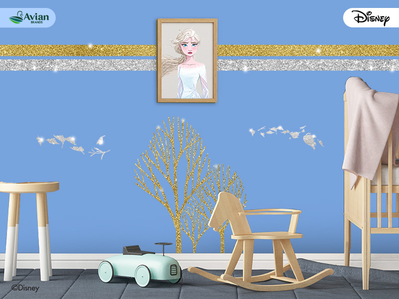 Langkah awal untuk membuat kamar tidur anak bernuansa karakter Frozen adalah dengan mengganti cat tembok menjadi warna biru muda, lalu kamu bisa berikan sentuhan motif salju pada dinding sebagai pelengkap.
