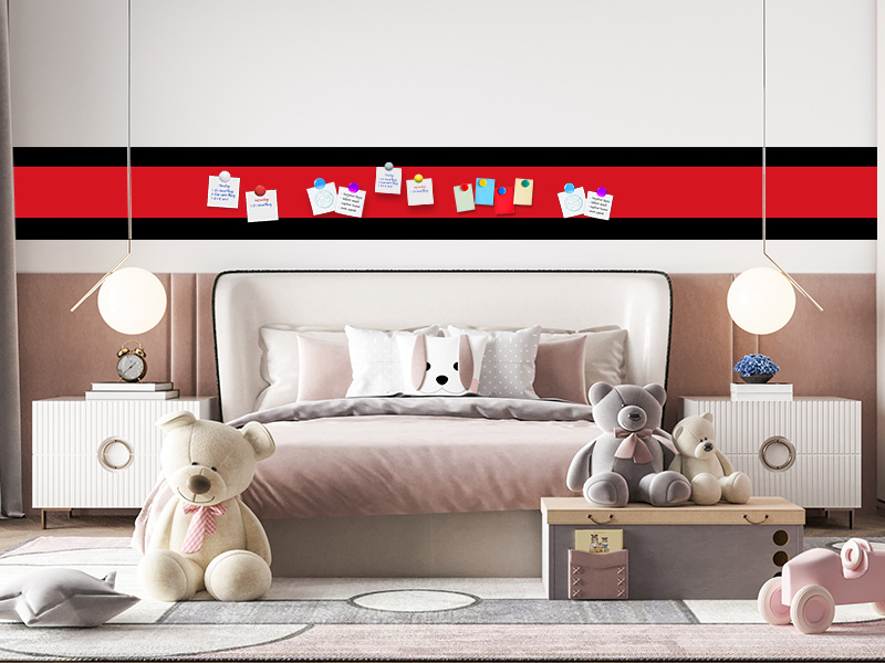 Mulai sekarang, dinding kamar anak dapat dipenuhi beragam kreasi dan dekorasi tanpa perlu membeli board yang menutupi keindahan dinding interior kamar.