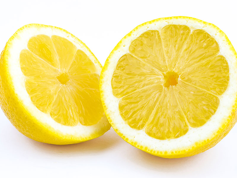 Potong buah lemon menjadi 2 bagian, lalu gosokkan daging buah lemon ke permukaan dinding yang terkena noda secara perlahan