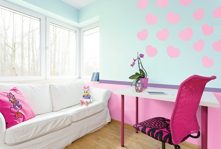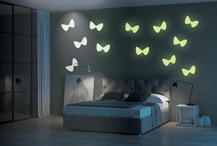 Dibantu dengan stensil karakter favorit anak, dimana produk ini dapat menghasilkan efek glow in the dark sehingga siluet karakter Disney yang diaplikasikan dapat menyala saat lampu kamar anak dimatikan. Berbahan dasar air, sehingga cat ini aman sekaligus mudah diterapkan pada kamar sang buah hati.