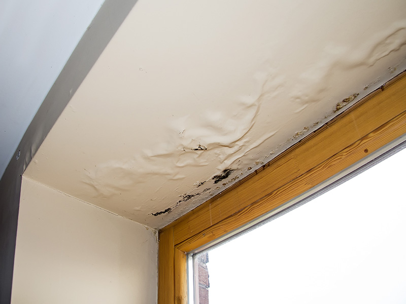 Beberapa bagian dinding biasanya menjadi lintasan saluran air atau talang air saat hujan dari atas genteng. Jika saluran atau talang air ini bocor, maka air akan rembes ke dinding dan noda bekas rembesan air akan terlihat pada bagian atas dinding.
