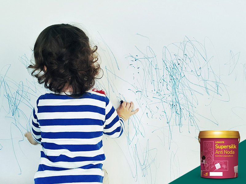 Ketika mulai belajar berjalan, si kecil akan menyentuh bahkan menggapai tembok sebagai penopang tubuhnya. Sementara saat si kecil mulai bisa mengekspresikan dirinya, tak pelak tembok ruangan di rumah akan menjadi objek maupun sarana untuk menuangkan imajinasinya melalui coretan.