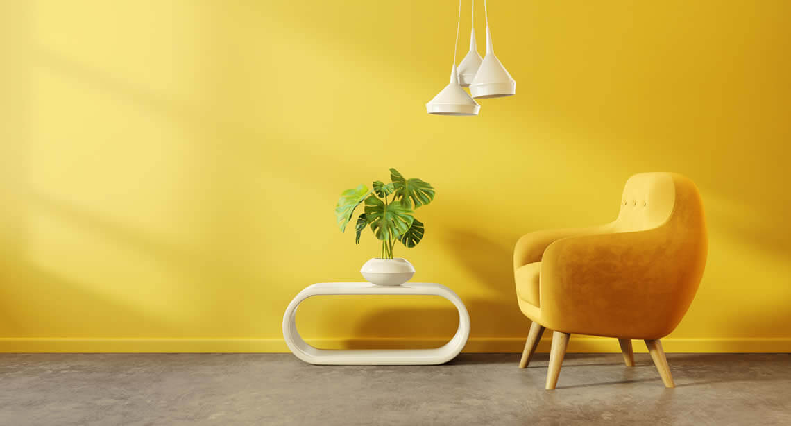 Warna kuning lemon merupakan salah satu warna cerah yang bisa memberikan suasana segar. Selain itu, warna ini juga bisa memberikan kesan ruang lebih luas dengan ditambahkan elemen interior ruang seperti pajangan bunga.