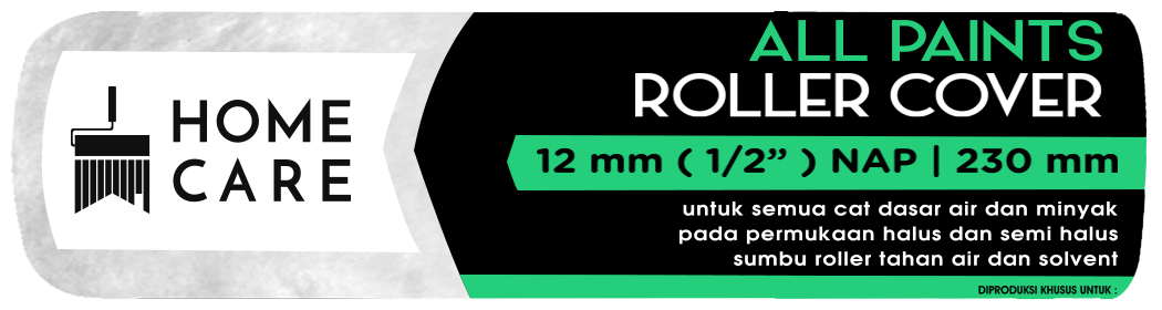 Rol untuk semua cat dasar air dan minyak. Dapat digunakan pada permukaan halus dan semi halus. Sumbu rol tahan air dan solvent. Daya serap cat yang baik.