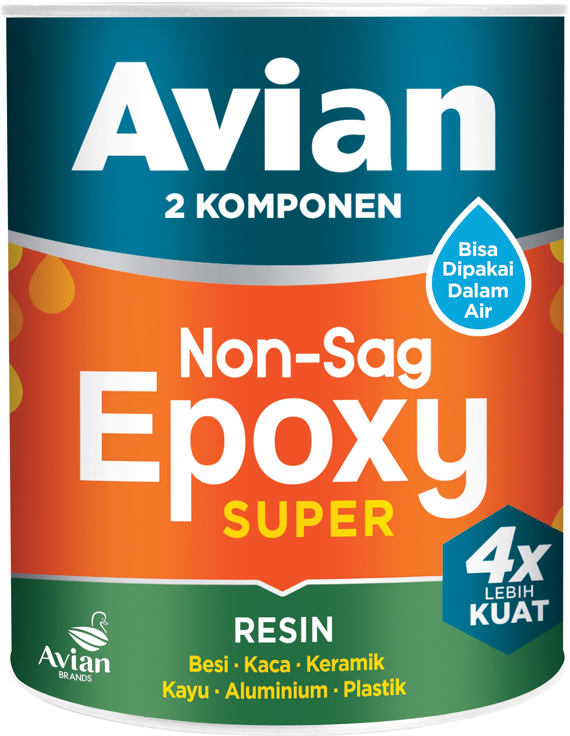 Avian Non-Sag Epoxy Super adalah lem epoxy 2 komponen yang mengandung filler sehingga dapat digunakan sebagai dempul. Produk ini diformulasikan khusus untuk perbaikan kapal kayu maupun besi. Avian Non-Sag Epoxy Super dapat diaplikasikan di dalam air, sangat sesuai digunakan sebagai perekat untuk menutup retakan atau kerusakan, baik dalam keadaan lembab maupun basah. Avian Non-Sag Epoxy Super dapat diaplikasikan ke berbagai substrat seperti besi, aluminium, kayu, keramik, kaca, dan plastik.