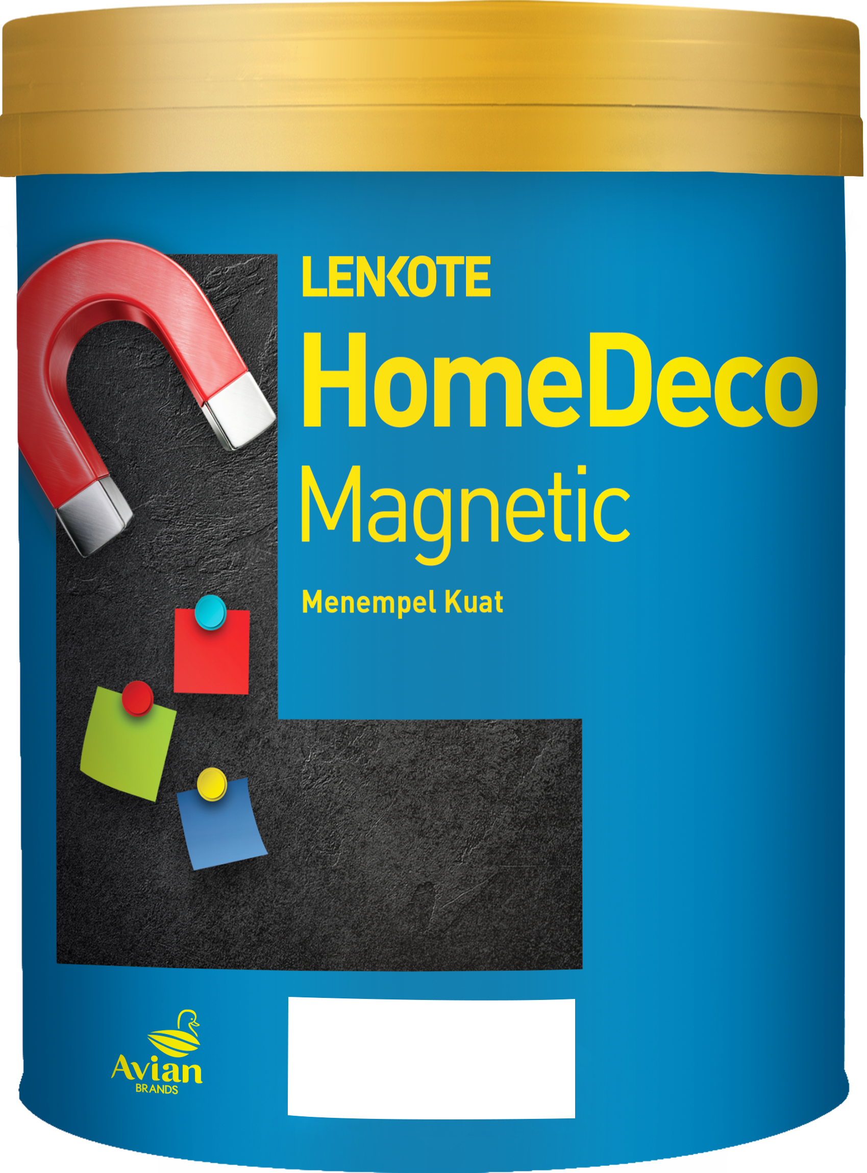 HomeDeco Magnetic adalah cat intermediate berbahan dasar air yang dapat melapisi bidang/substrate menjadi lapisan yang bisa menarik magnet sehingga magnet dapat menempel kuat. HomeDeco Magnetic diformulasi khusus agar dapat diaplikasikan dengan roller, kuas, maupun kape pada semua substrate/media interior.