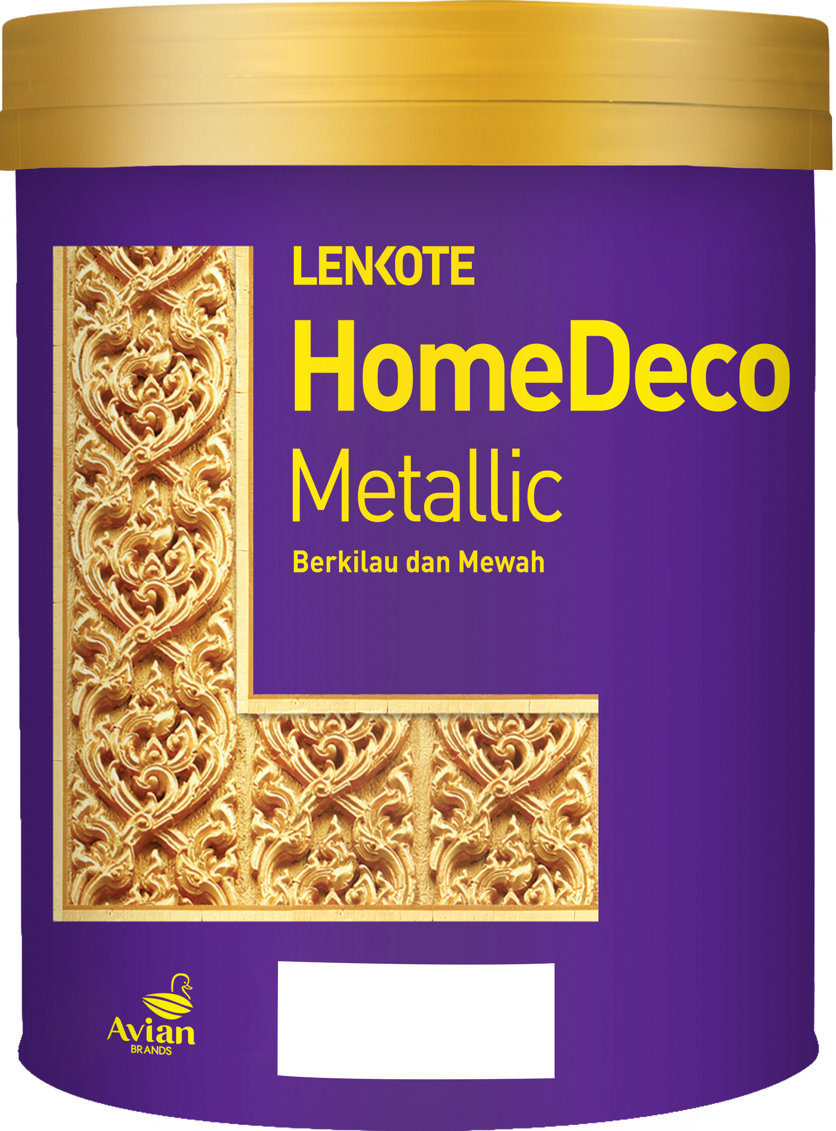 HomeDeco Metallic adalah cat akrilik berbasis air untuk interior dan eksterior yang dapat diaplikasikan pada beton, gypsum, kayu dan juga logam untuk memberikan efek berkilau dan mewah. HomeDeco Metallic Paint diformulasikan khusus agar mudah diaplikasikan dengan rol, kuas maupun spray. Cat ini memberikan efek metalik yang mewah bernuansa klasik maupun modern.