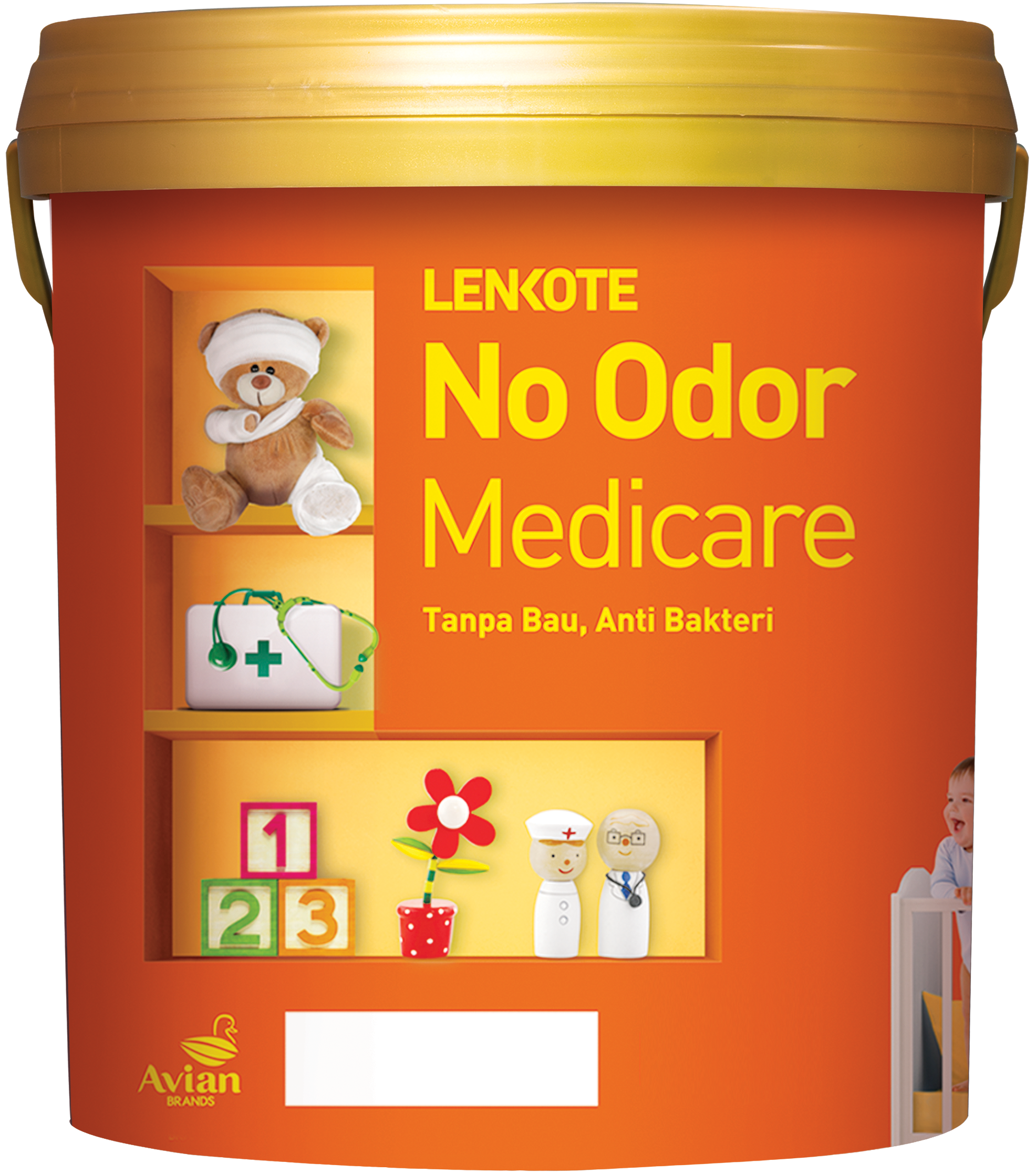 Lenkote No Odor Medicare adalah cat tembok premium dengan formulasi anti bakteri dan anti kuman sehingga menciptakan ruangan yang aman dari pertumbuhan bakteri dan higienis bagi keluarga Anda, terutama untuk kamar anak maupun bayi. Lenkote No Odor Medicare juga diproses dengan teknologi tinggi sehingga bau yang dihasilkan sangat lembut dan ramah lingkungan.