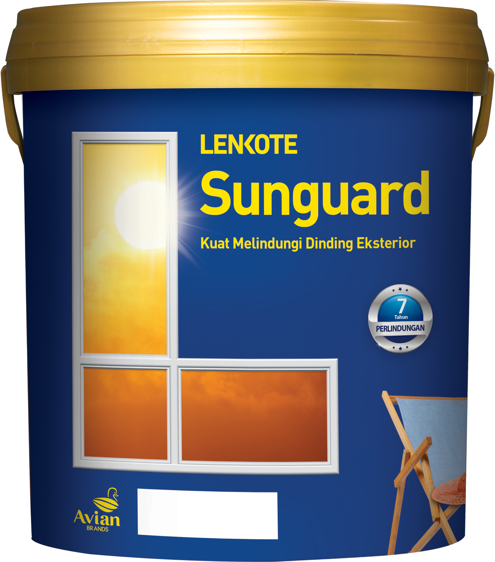 Lenkote Sunguard Acrylic Emulsion adalah cat bermutu tinggi yang dibuat dari 100% bahan superior acrylic yang diformulasikan untuk semua tembok luar baru atau sudah pernah dicat sebelumnya Lenkote Sunguard merupakan cat tembok eksterior pertama di Indonesia yeng menggunakan Nature Guard Technology yang efektif melindungi permukaan dari kotoran dan sangat mudah untuk dicuci.