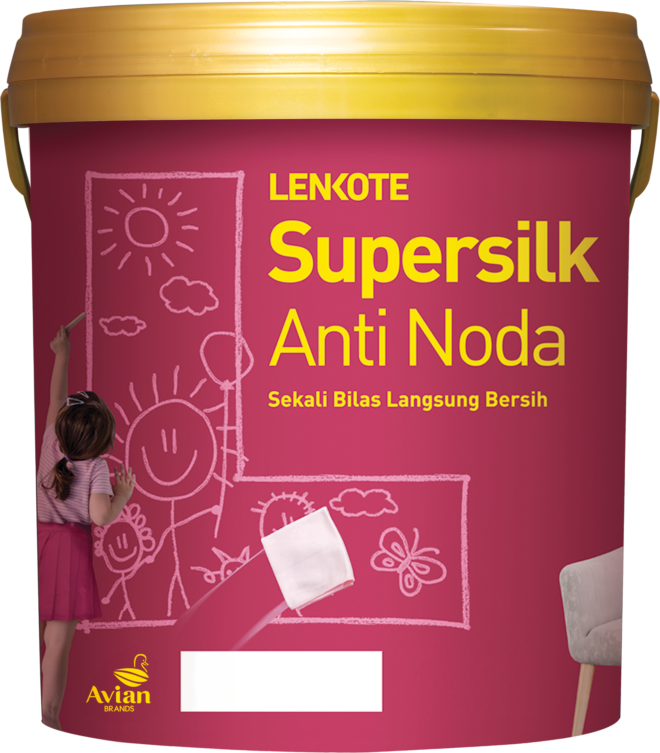 Lenkote Supersilk Anti Noda adalah cat tembok premium yang memiliki efek daun talas, sehingga noda mudah dibersihkan dengan sekali bilas tanpa merusak permukaan cat. Lenkote Supersilk Anti Noda juga memberikan hasil akhir yang halus, sedikit mengkilap, dan warna tahan lama. Dengan bahan baku berkualitas tinggi, produk ini memiliki kadar VOC rendah sehingga termasuk sebagai produk ramah lingkungan.