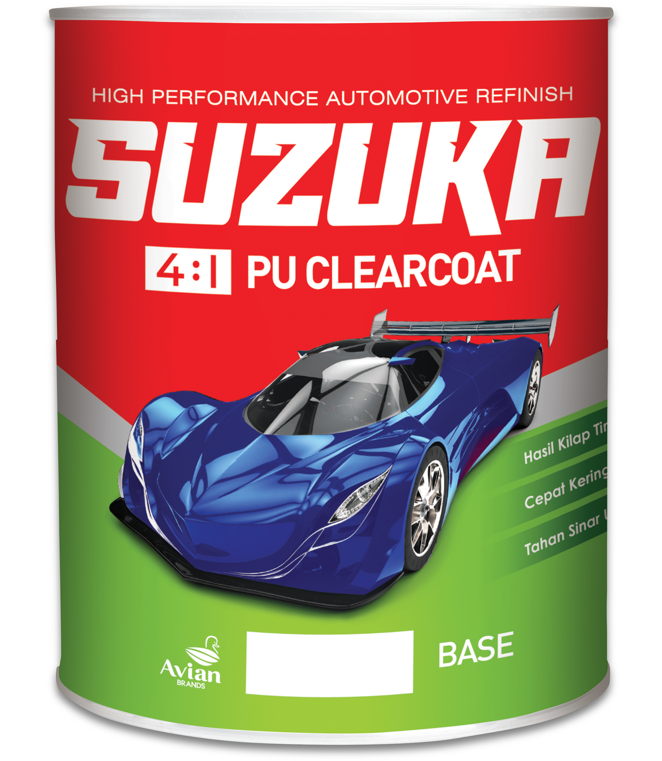 SUZUKA 4:1 PU Clear Coat adalah pernis dua komponen berbasis polyurethane dengan kadar solid medium. Memiliki keunggulan daya kilap tinggi, memberikan ketahanan terhadap sinar UV dan perubahan cuaca ekstrem (tidak mudah menguning) serta memiliki kecepatan kering yang sangat baik. Suzuka 4:1 PU Clear Coat sangat cocok untuk pengecatan otomotif khususnya untuk spot repair, serta aplikasi finishing pada pengecatan kayu, pintu, dan produk furnitur lainnya.